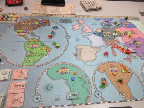 長岡で開催されたクローズドゲーム会に参加しました。 ・ストラグルオブエンパイア 列強の指導者となって欧州の地域や海外の植民地の利権をめぐって争うマルチゲーム。ゲームは全3戦役(ターン)で、各戦役開始時に競りで順番や同盟を決め、順に5フェイズ(各…